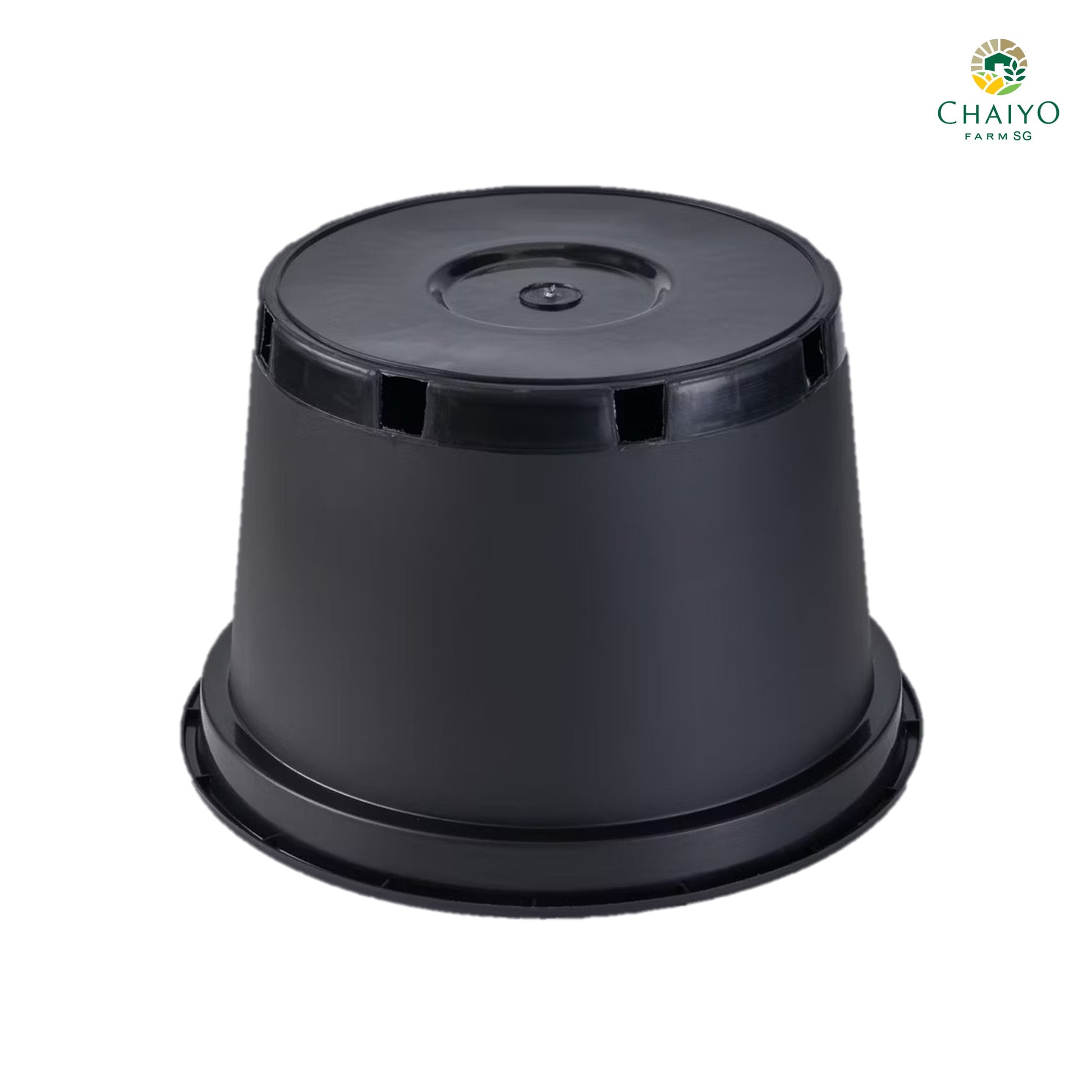 27.5 cm plastic pot, round shape, with drainage holes at the bottom of the pot for good ventilation, helping the plant growth.